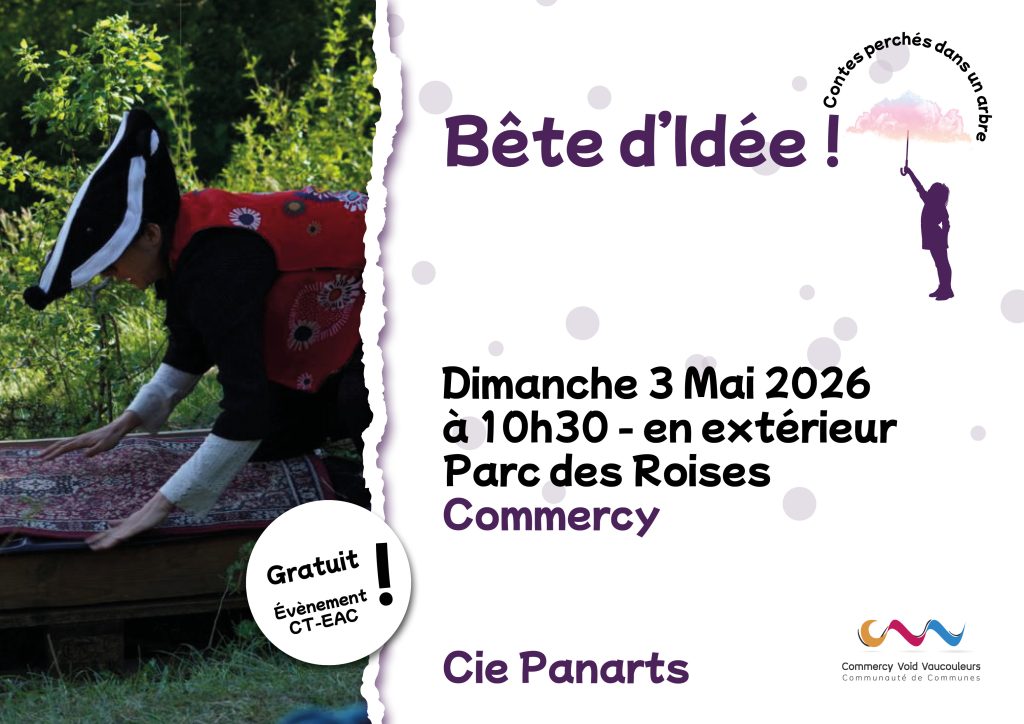 Bête d’idée est un spectacle de contes jeune public adapté de trois albums jeunesse de Emily Gravett : Le Grand Ménage, Superflu et Le grand Bazzar ! Dans Bête d’idée, le public surprend les personnages principaux des albums jeunesse, Benoît le blaireau et Meg la pie dans leur environnement. Benoît et Meg nous racontent leur parcours, leurs réussites mais aussi leurs bêtises. Ils sont accompagnés par un troisième élément, central dans ce spectacle : l’arbre dans et autour duquel ils vivent. Les récits sont contés à partir de l’arbre, dans lequel évolue également le décor des 3 histoires.
